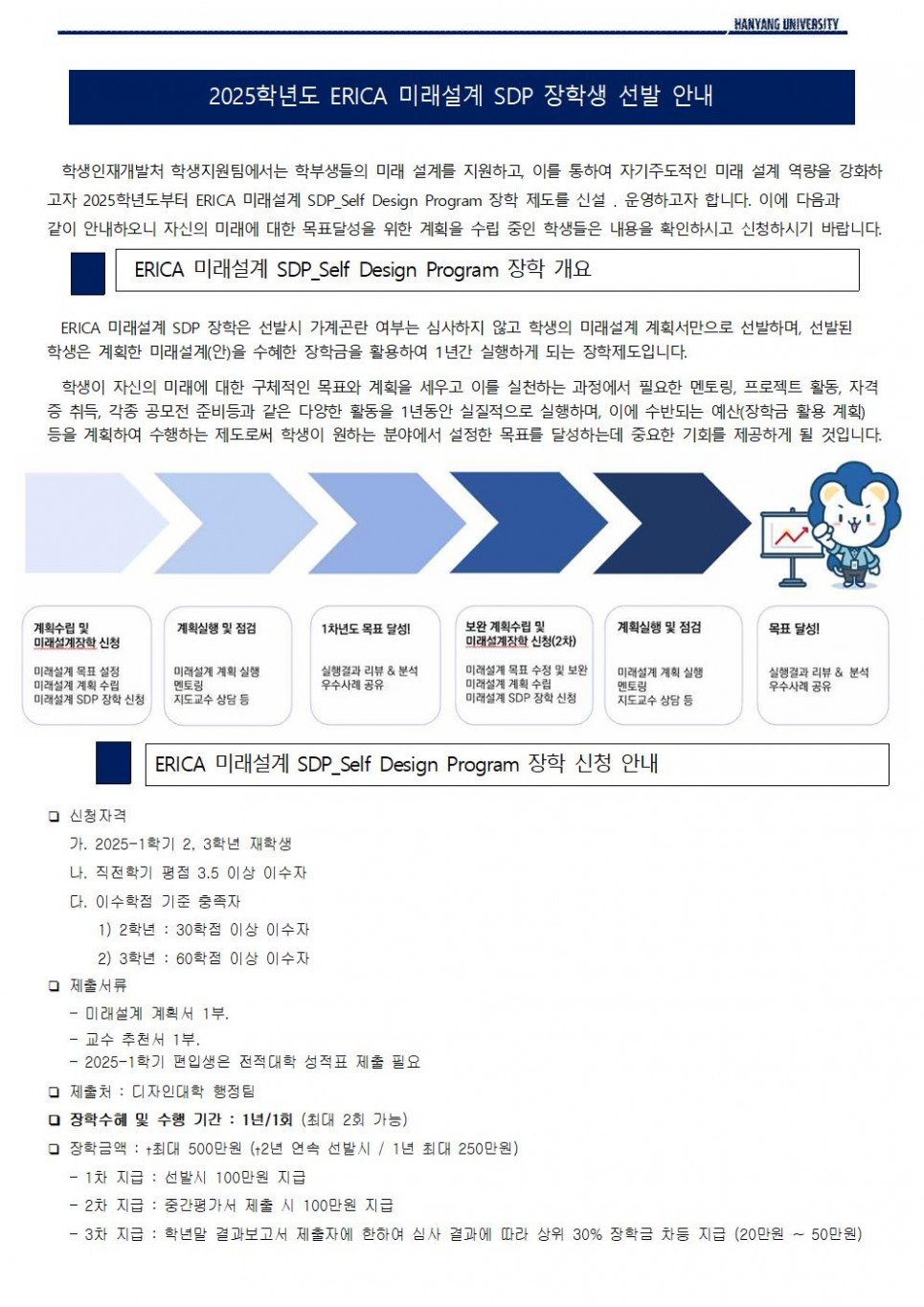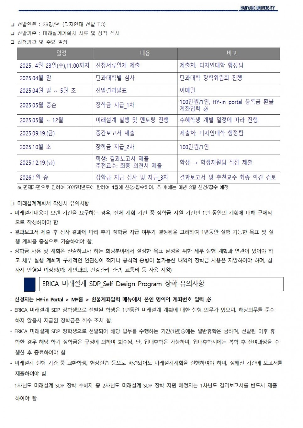 붙임 1. 미래설계 SDP 장학생 선발 안내문