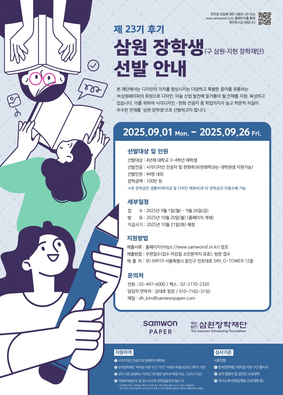 곧 다가올 9월 2학기 개강에 맞춰 제23기 후기(2025년 2학기) 삼원장학생을 모집합니다.