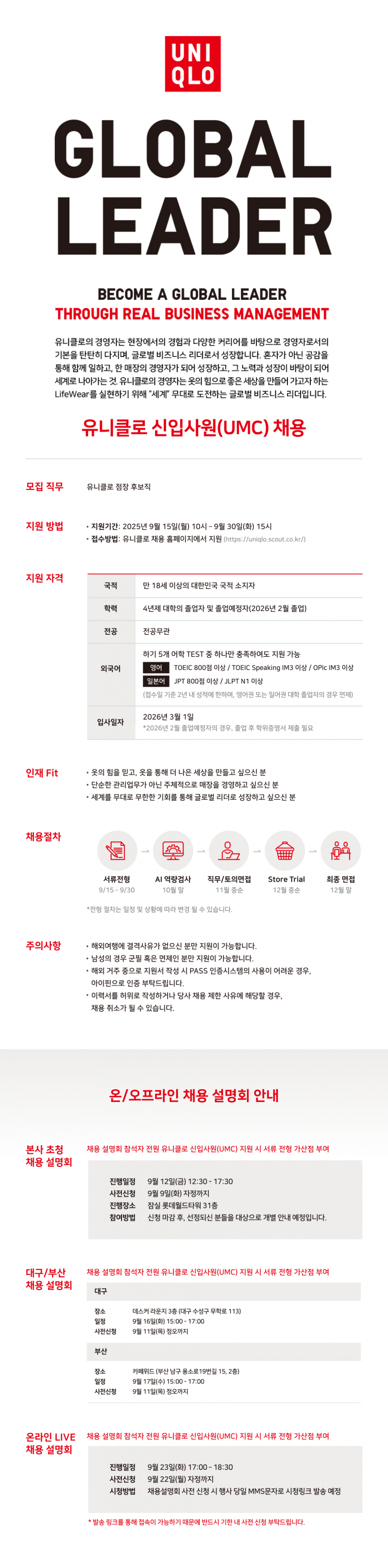 [취업·창업] [유니클로] 신입사원(UMC) 모집 안내 (~9/30)