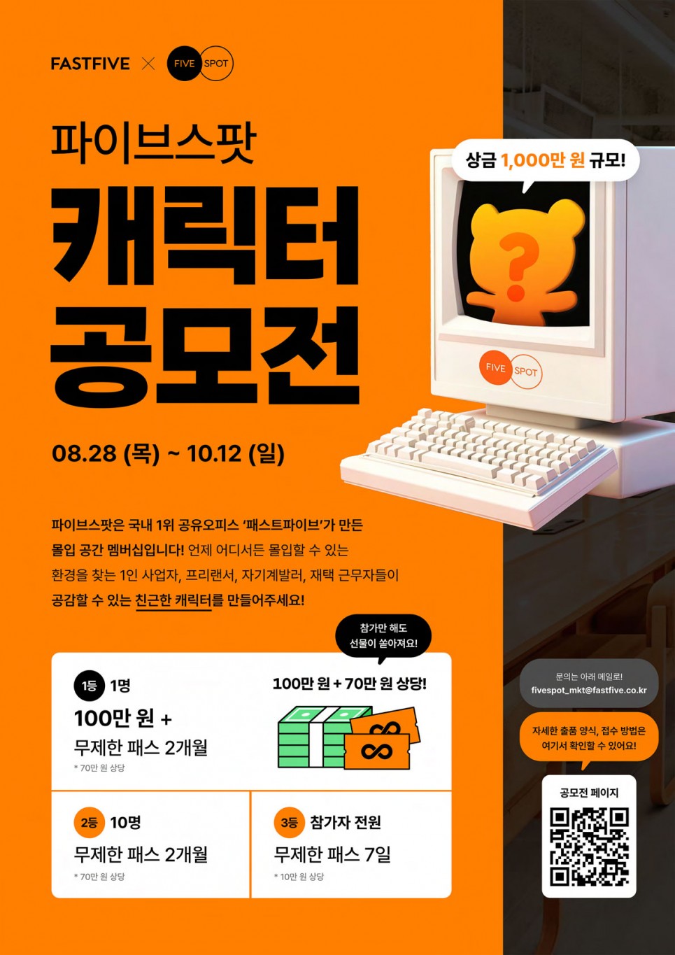 - 첨부파일 : [FASTFIVE] 파이브스팟 캐릭터 공모전_포스터_웹용.jpg (279.2K) - 다운로드