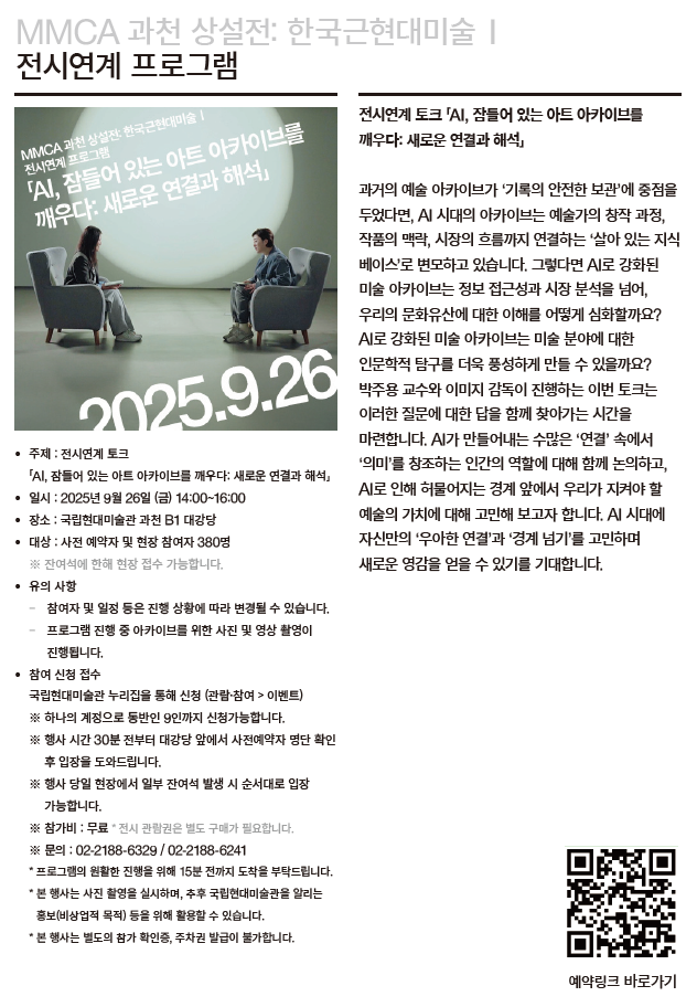 [일반] MMCA 과천 《한국근현대미술 I》전시연계 AI 아트 아카이브 토크 안내