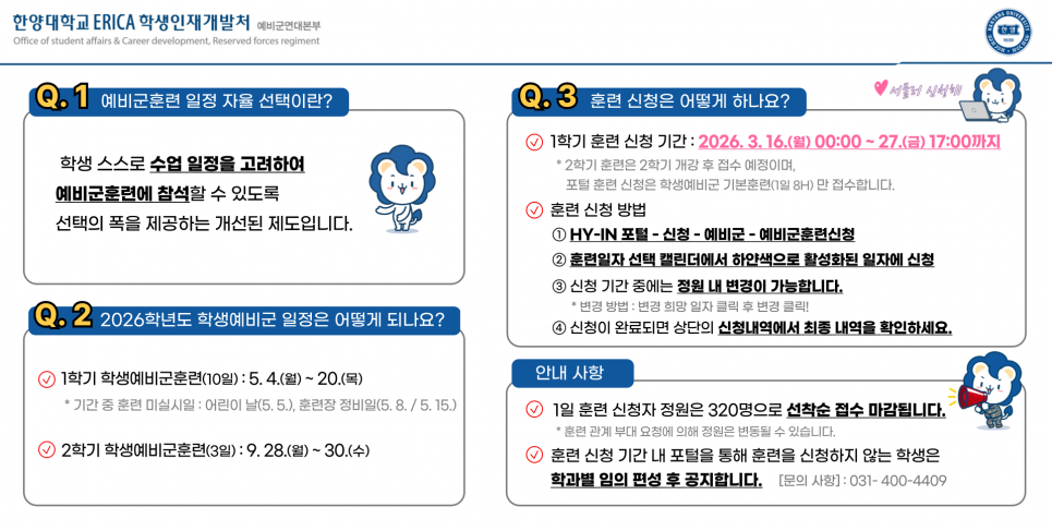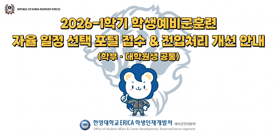 [일반] [예비군연대본부] 2026-1학기 학생예비군훈련 일정 안내