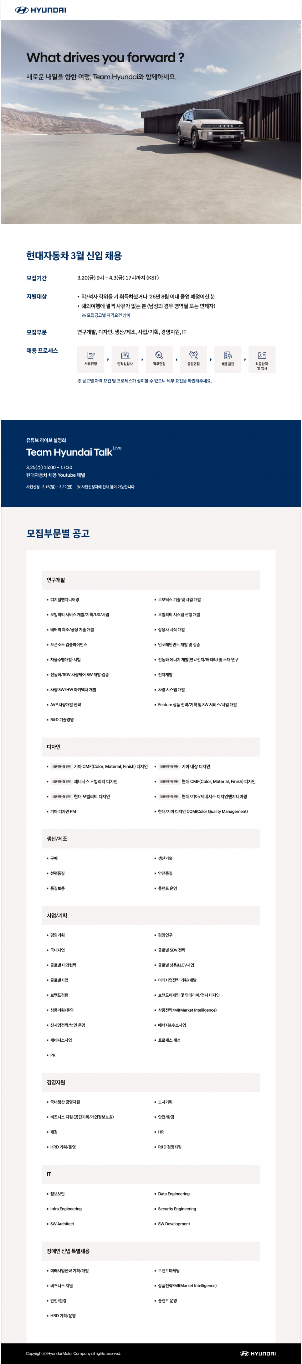 [취업·창업] 현대자동차] 2026년 현대자동차 3월 신입 채용