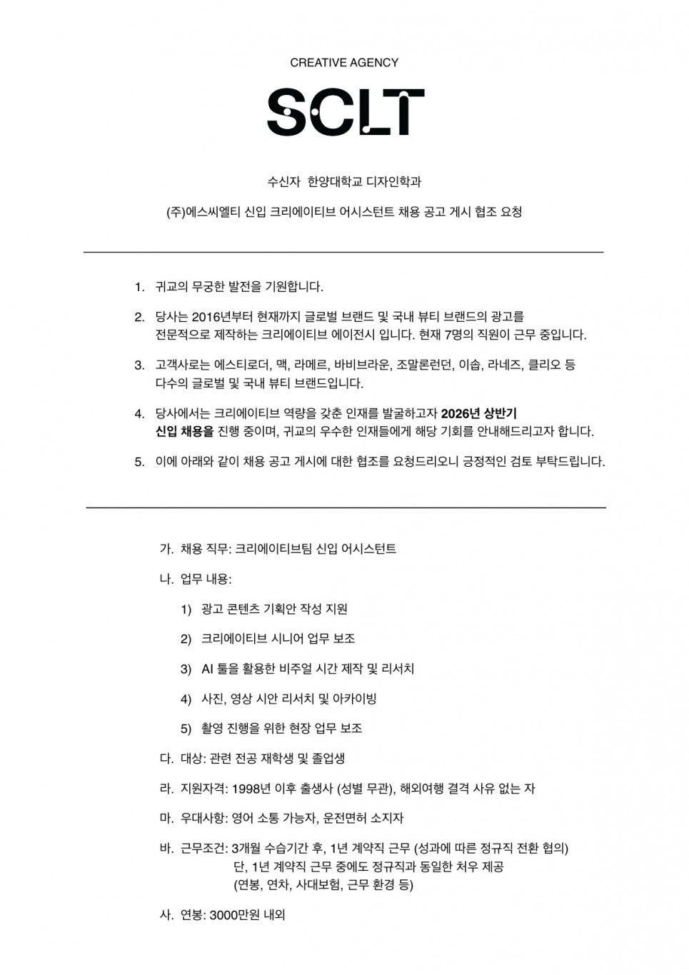 [취업·창업] [SCLT] 채용 공고`