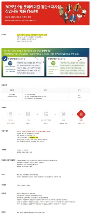 2025년 9월 롯데케미칼 첨단소재사업 신입사원 채용 I’M전형